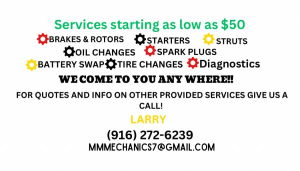 $75 brakes, oil change $40 etc for more info call Larry 916 272-6239