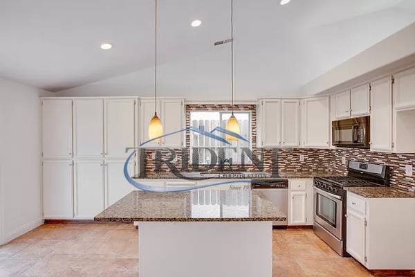 This is a 4 bedroom, 2 bathroom house with approximately 1612 square feet located in a cul-de-sac. This house includes a living room with gas fireplace, dining room and great room open to kitchen. Kitchen offers granite countertops, center island and breakfast bar, gas stove, microwave, dishwasher, and canned lighting. Master bedroom includes ceiling fan and walk in closet. Interior laundry room, central heating & air, ceiling fans, and 3 car garage with opener and patio.