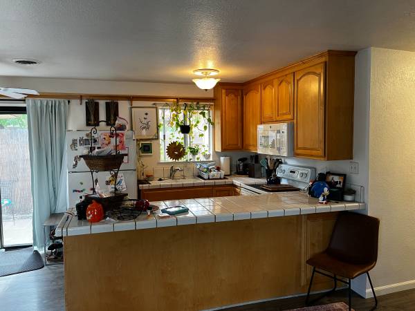 Very nice unit in move-in condition. 800 sf, 2 bedrooms, 1 bath with walk-in shower, spacious open living area, indoor laundry, attached 1 car garage, private fenced rear yard, quiet neighborhood and conveniently located to shopping and freeway access. Central Heat and AC. Includes Washer, Dryer and Fridge. Pets are ok. No smoking. Available November 1, 2025. Please email or text your interest.