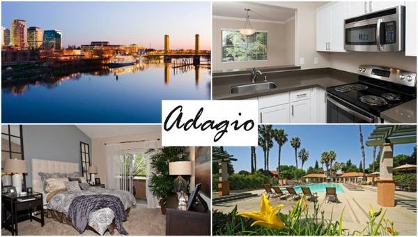 To a musician, adagio means a slow, graceful pace. To Sacramento residents, Adagio means a beautiful, inviting Mediterranean-inspired apartment community of well-designed floor plans and luxury amenities located just minutes from Sacramento Metro Center. Choose from our spacious one and two bedroom apartments for rent in Natomas near Barandas Park and the Sacramento and American Rivers. Your new home at Adagio is designed with high-end features and finishes that make daily life a pleasure, like granite countertops and stainless-steel appliances, in-home laundry facilities, large private patios and private garages. We invite you to experience the exceptional comforts of this charming Metro Center Sacramento, CA, community at whatever pace you choose!