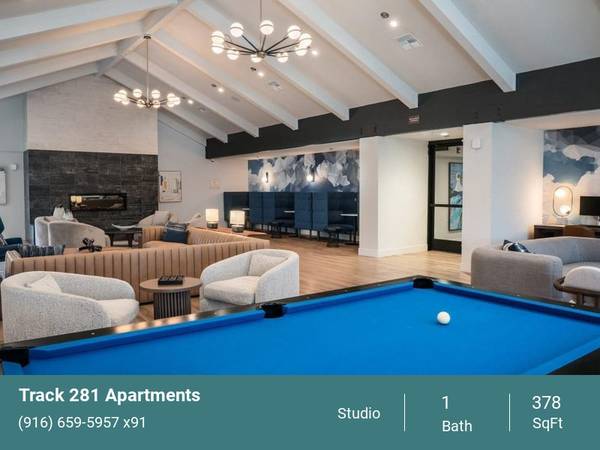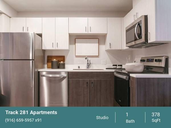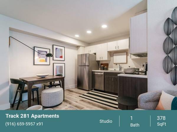 Welcome to Track 281 Apartments, where we inspire you to live on your terms. Aiming to put your well-being first, our new apartments in Sacramento are studded with modern amenities and recreational spaces. Step into a world of joy as you explore our studio, one, and two-bedroom layouts. Spacious, yet snug, they are the perfect backdrop for your day-to-day, whether you're a busy professional or someone who prioritizes comfort. Enjoy quartz countertops, hardwood-inspired floors, and stainless-steel appliances, as well as vaulted ceilings and private patios in select units. And we're pet-friendly, so bring your furry friends along on this beautiful journey!