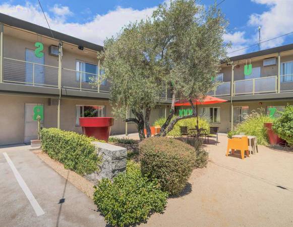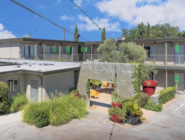 Greens at Del Paso offers a charming one-bedroom unit nestled in a boutique community, perfect for those looking to enjoy the comforts of modern living. Each unit is equipped with complimentary signature toiletries, free Wi-Fi, and limited self-parking, ensuring a hassle-free stay. Guests are invited to unwind by the secluded outdoor pool, relax by the outdoor fireplace, or enjoy a picnic in the beautifully landscaped courtyard. The community is eco-conscious, with staff exclusively using natural cleaning products and participating in sustainable practices. Vending machines provide a variety of beverages, and coffee is available in the lobby to start your day right.