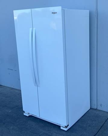 Hello we are selling a Whirlpool white side by side refrigerator, it is in good condition. Schedule appointment by email .