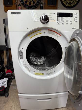 Dryer is gas it’s in excellent condition with no issues at all very clean and well maintained only a few years old the gas line and dryer vent is included to save you a few bucks I can possibly deliver depending on the location or if you want to pick it up I’ll help load it