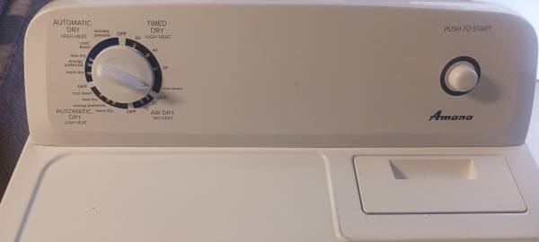 White Amana Electric Dryer. Looks and runs perfect! No issues. Heavy duty, Super capacity plus! FREE LOCAL DELIVERY!!! (Roseville/ Rocklin/ Lincoln area) 30 DAY WRITTEN WARRANTY! (Written in full on...