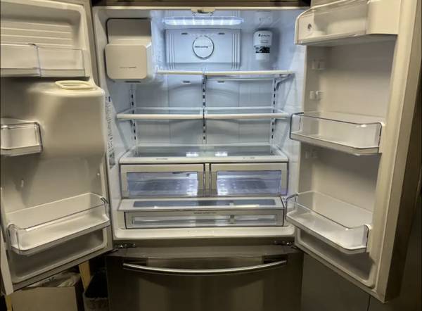 Excellent refrigerator. Beautiful fridge with a lot of different options. Will have it plugged in. Samsung 3 door style. Works fantastic. Has water and ice maker. Contact me at