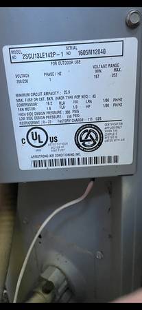 I have for sale Used 3.5 Ton Condenser Unit ARMSTRONG Model 2SCU13LE142P-1, 3.5 ton condenser coil $-300. from remodel home. A/C condenser 3ton New capasitor, NEW cond ,fan motor , Hi Efficiency. 14 seer Good working condition. 3 ton 16 seer R-410a $-500 + Fee $$$-for Installation, Available. Call for direction .916-,712,17,78 .