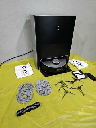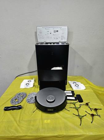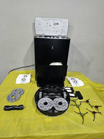 handles vacuuming and mopping in one pass. the base takes care of emptying, washing the pads, and drying them so they don’t stay damp. smooth mapping, good navigation, and you can power it on at pickup to check it out.