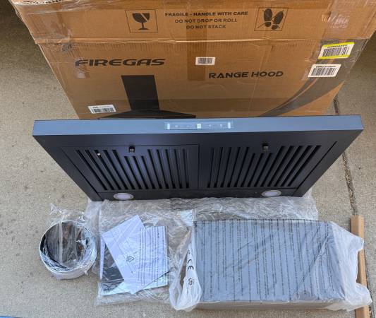 FIREGAS BLACK RANGE HOOD 30 INCH 450 CFM WALL MOUNT DUCT/DUCTLESS GESTURE TOUCH