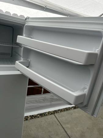 White Top Freezer refrigerator in very good condition very clean works well. Size is 28 inches wide by 30 inches deep by 67 inches tall can deliver for a fee comes with a 30 day warranty and no...