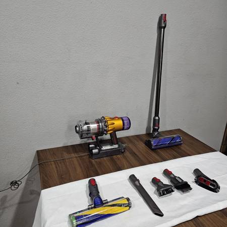 comes with wall mount and charger, plus 4 tools: crevice pieces, the laser soft head, and the anti-tangle hair vanes head.