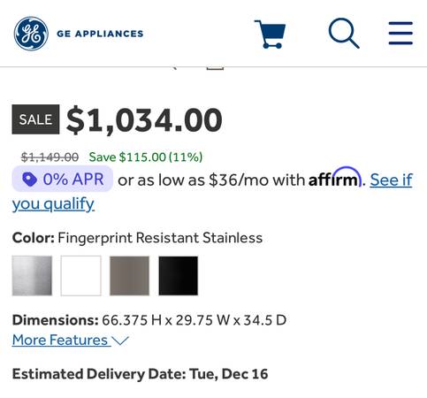 2023 model GE 19.2 Cu.Ft. Stainless Top-mount fridge delivery available Retail price $1034