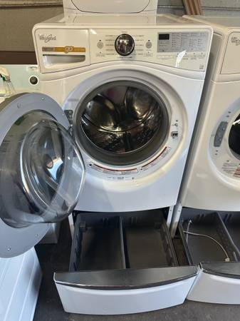 FRONTLOADER WHIRLPOOL SET WITH GAS STEAM DRYER ON PEDESTAL DRAWERS CAN DELIVER SO MANY OPTIONS TOO MANY TO LIST