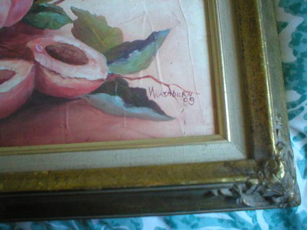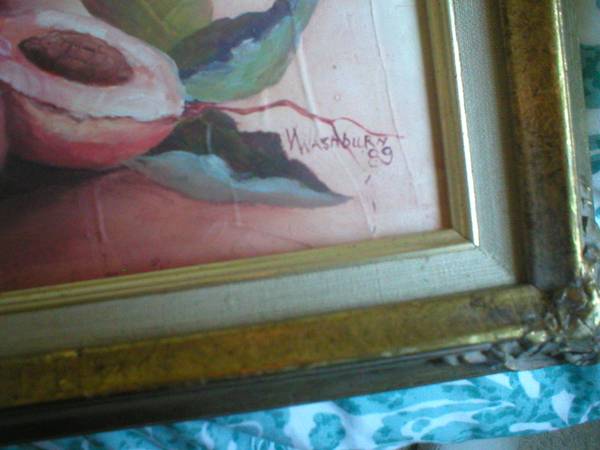 Signed Oil Painting on Canvas With Peaches. Painting 19 1/4 X 15 1/4. Frame 23 1/2 X 19 1/2.