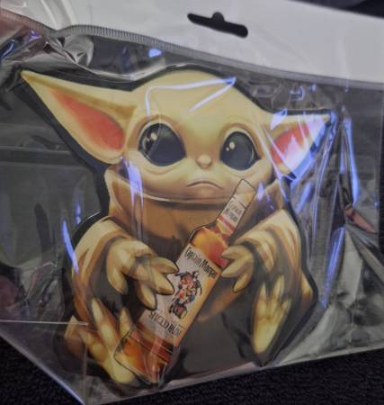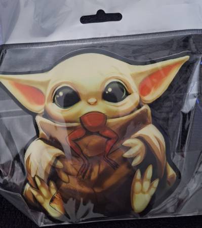 Please see photos this is one decal, depending on how you look at it.It shows two different images, one baby yoda, with a frog.The other baby yoda with captain morgan