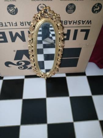 I have several mirrors and a painting for sale. 25 x 10.5 oval gold mirror $25.00 19 x 15.5 round gold mirror $30.00 SOLD 30.5 x 16.5 vintage 1940's Jesus tending his flock picture $50.00 painting...