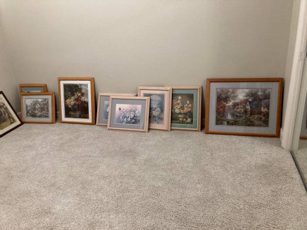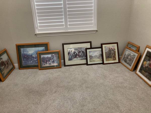 12 framed matted prints. most double or triple matted in glassed frames. Sell $15 to $20 Each CASH ONLY. only. IF INTERESTED SEND PHONE NUMBER TO TALK.