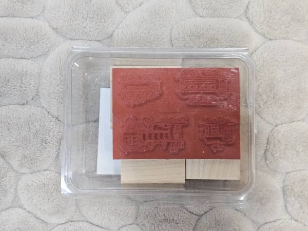 Versatile wood-mounted train-themed rubber stamps ideal for crafts, scrapbooking, and DIY projects. High-quality designs ensure sharp and detailed impressions. Labels and stamps still uncut and unmounted. NEW!