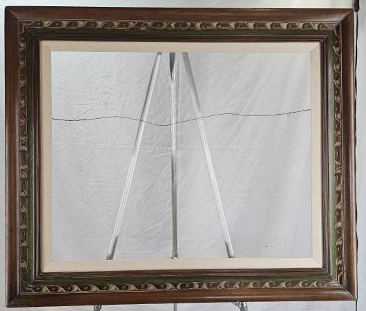 Large vintage carved solid wood frame with beige linen liner. Nice earthy tones of brown and green make this frame versatile enough to go with most any picture or décor. Minor imperfections to be expected with age, but overall in outstanding vintage condition!