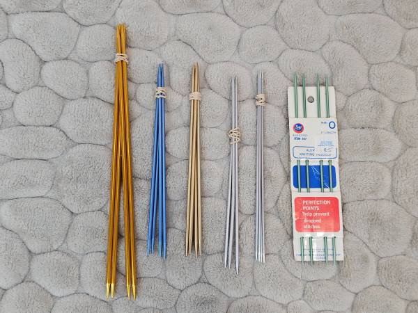 Lot of 6 sets of vintage aluminum double point knitting pins. SOLD AS A LOT - WILL NOT SEPARATE.