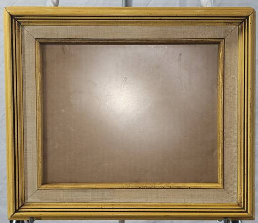 Vintage bamboo colored wood frame with beige linen liner and glass front. Minor imperfections to be expected for a frame of this age. Neutral color so blends in nicely with your décor. Nice vintage condition.