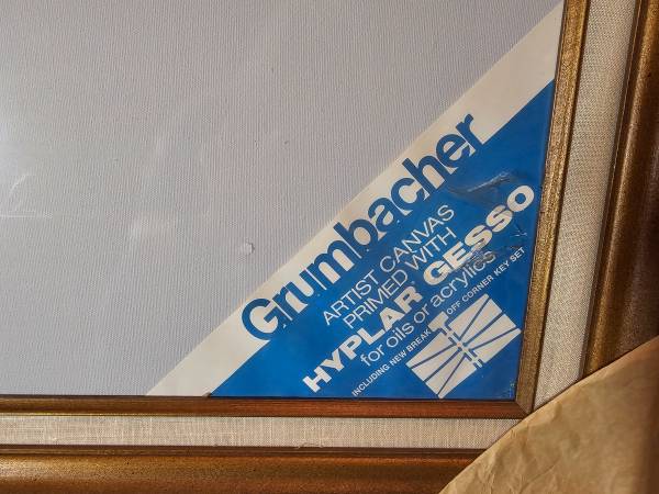 Grumbacher artist's canvas is new, in factory cellophane (although places have been torn on the cellophane, but no effects to the canvas)
