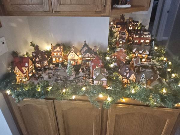 Department 56 Dickens Village Handpainted Porcelain. I have more than 50 separate collectors pieces based around the Dickens Village theme. They are in excellent condition in their original boxes and come with individual lights. The photos give an example of how they can be displayed. There are too many to show individual photos. I would like to sell them for $10 each on average in a large group. Will consider offers also.