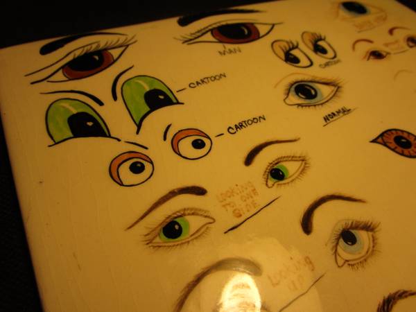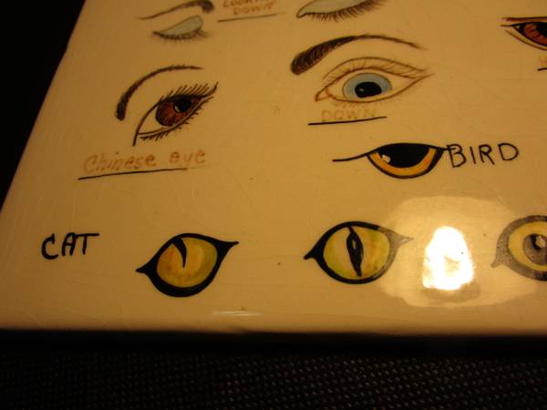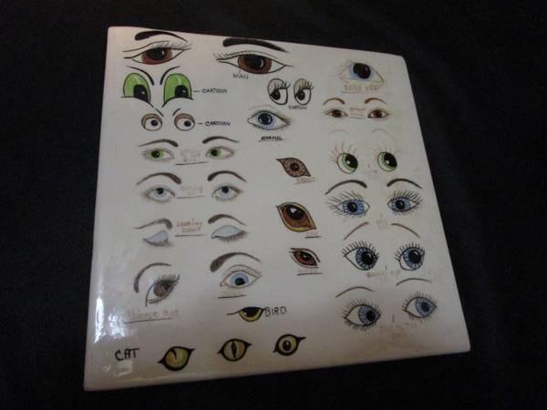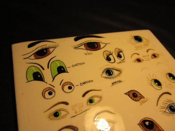 Vintage 1960s Artwork from Artist Ken Ocorr - Ceramics Tile "EYES" Beautiful hand painted tile. Great for a Halloween Party! Estimated year created: late 1960s - early 1970s Condition: Perfect...