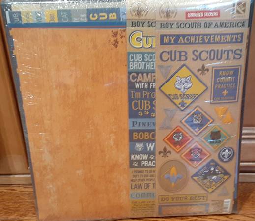 Scrapbook Kit for your Cub Scout. Has a metal tag below the picture where you can insert a picture of your choice. Never been opened sealed. Features;