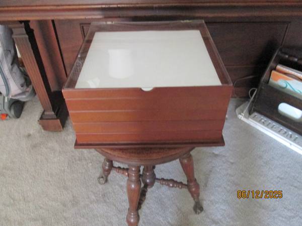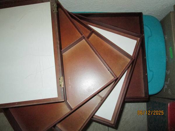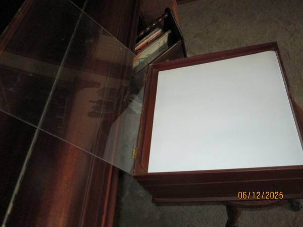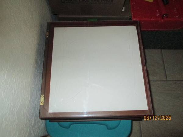 This works really well for organizing pictures and pages. Measures 13x13x7. The top is a hinged acrylic piece that keeps your project dust free.