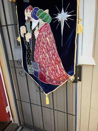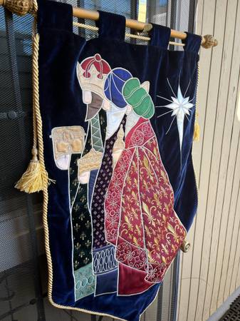 This velvet banner of the 3 Wisemen has been beautifully crafted with Gold and Silver threading and fabric detailing. A perfect addition to your holiday decorations.
