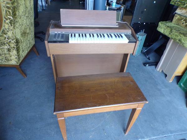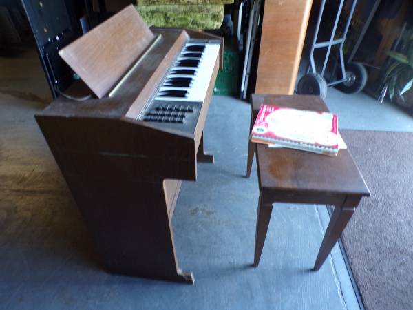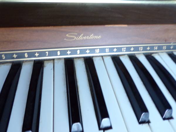Antique Silvertone Electric Chord Organ for sale. Antique. There are 3 keys that don't work. Sale includes the organ bench with storage. Dimension of the organ 31 1/2"W x 16 1/4"D x 31 1/4"H. Bench dimension: 25"L x 13 1/4"D x 21"H. Price $150. If interested, please call me.