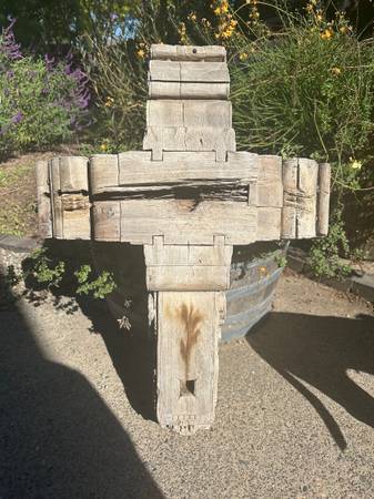 I believe this is a European. I cannot find another one like it anywhere online. I purchased about 20 years ago from an antique dealer. Solid wood with gorgeous hand carved detailing. It is quite heavy, estimating 35 to 40lbs. Dimensions 29”x32”, Very unique and beautifully weathered! A one of a kind treasure! Will only let it go to someone who appreciates its beauty and history.
