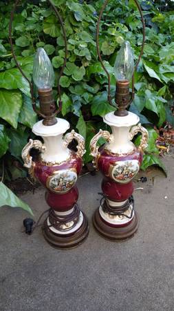 VTG Martha & George Washington Handptd. Gold Gilt Porcelain Lamp