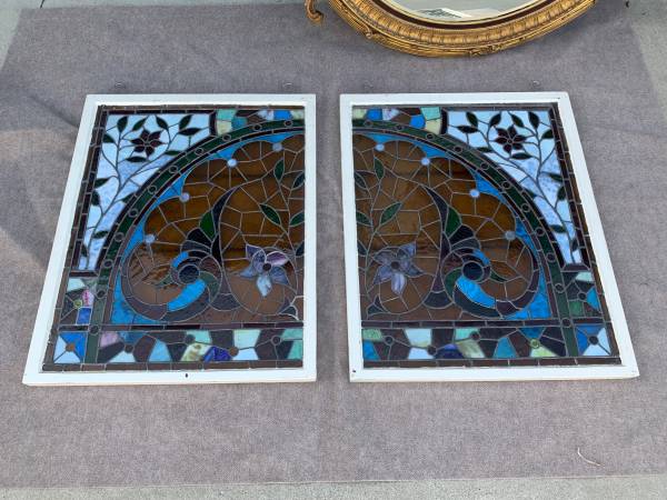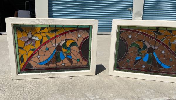 Large Antique Stained Glass Windows, Authentic Queen Anne era Victorian. These are authentic American made stained glass windows from Victorian Homes in Pittsburgh, Pennsylvania built in the early 1900s.