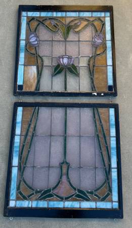These are authentic, original antique stained glass panels rescued during the demolition of grand Victorian homes in Shadyside, Pittsburgh, in the early 20th century. Each piece captures the artistry and craftsmanship of a bygone era — hand-cut glass, lead came detailing, and rich color tones typical of late-Victorian and Edwardian design.