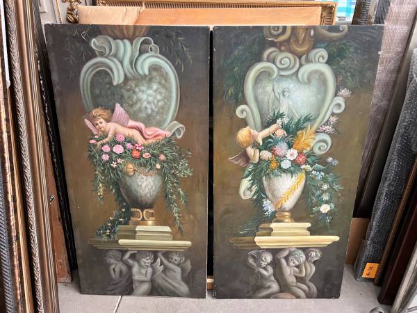 Beautiful original oil paintings - $40 for the pair. Unframed. They have some slight scratches, please see photos. 20x40 inches each [Inventory #219]