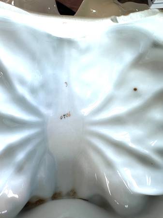 Antique German porcelain divided serving dish with a lobster handle and gold trim