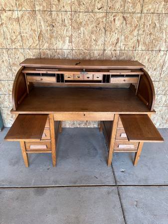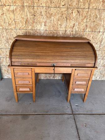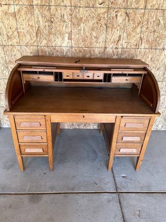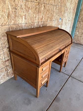 Roll-top desk Been in family since 1918 or 1920 Actual age unknown Desk height - 30.25"
