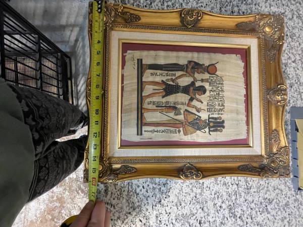 Two Egyptian style art pieces sealed in nice thick stylish frames. Found them at an estate sale in a nice part of Folsom so they have to be worth something! My resources say they were most likely...