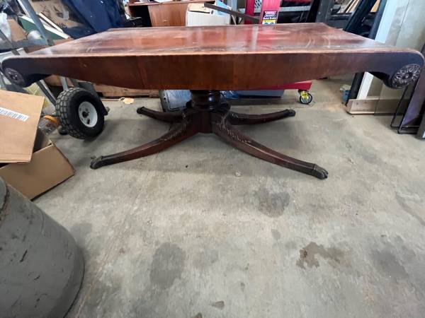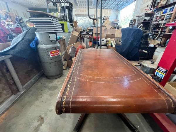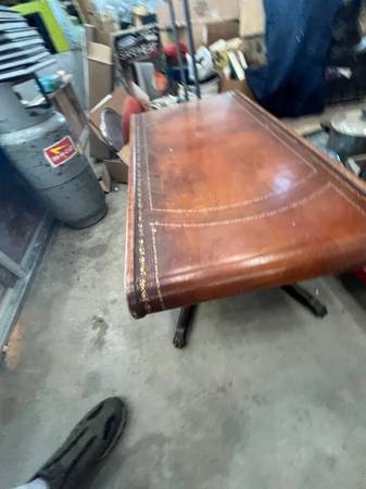 Antique leather top tables.embossed with gold leaf. 1 coffee table and two end tables. Nice condition. Offers and trades considered.