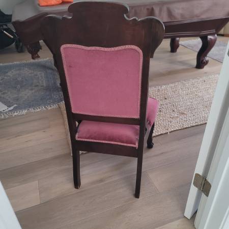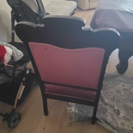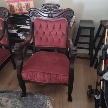 Two chairs and love seat looks to be cherry wood but not sure. All pieces need to go by Thanksgiving, all offers considered Height 42in Length 32in Wide 60in