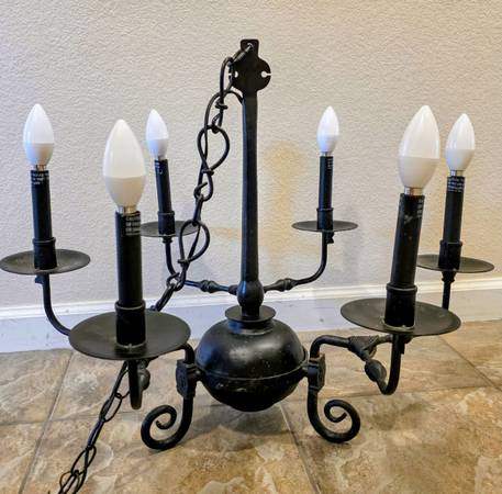 For sale is this stunning Vintage Paul Ferrante Queen Anne replica Wrought Iron Chandelier. It is hand-forged and has amazing detail! 6 candelabra, 60 watt max per bulb, 7 ft of chain and 12 ft of...