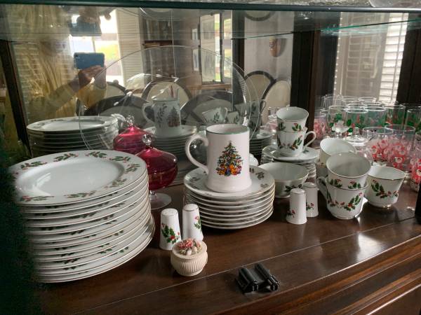 The holidays are coming and Christmas plates are always a lot of fun for the holidays in December. But I’m in my early 80s and don’t have my wonderful collectibles to leave to anyone. So for $100 you get 12 full dinner plates, salad, plates, and dessert plates. Also matching cups saucers And glasses. Full set for 12 people. Oh sugar, salt, creamer, bread, dish, butter, dish, etc. All of this for only $100. Breaks my heart to sell them, but it’s just me now.