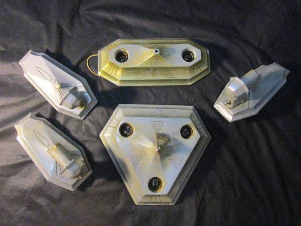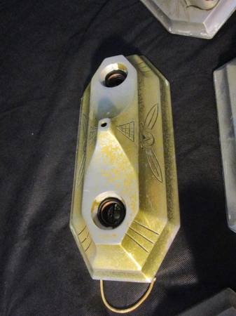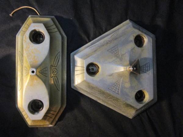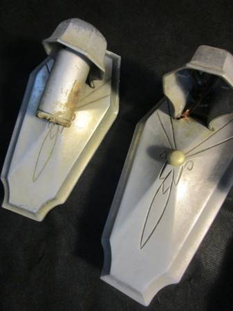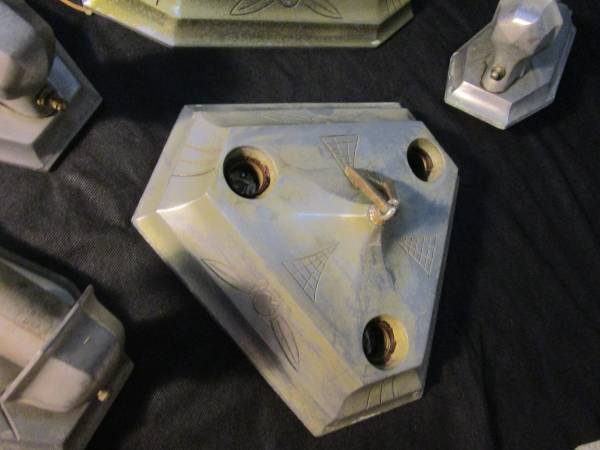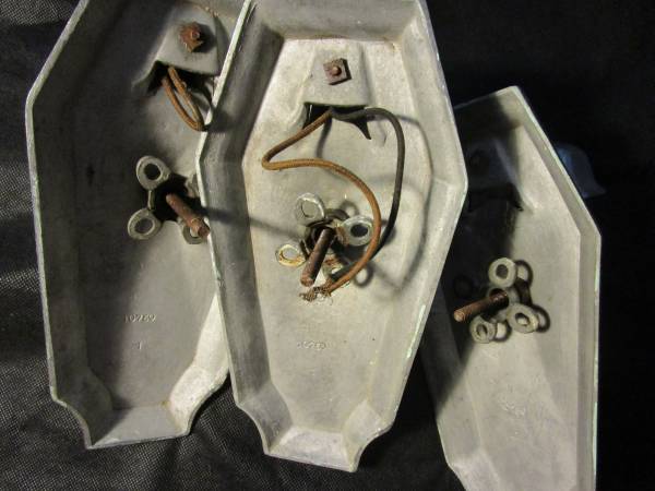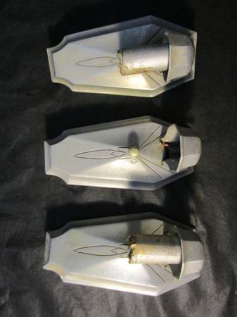 I would guess that the age and use of aluminum that these light are from the 1940s - 1950s. They have no manufacture's marks however, they are all numbered the same which leads to matching the same manufacturer!