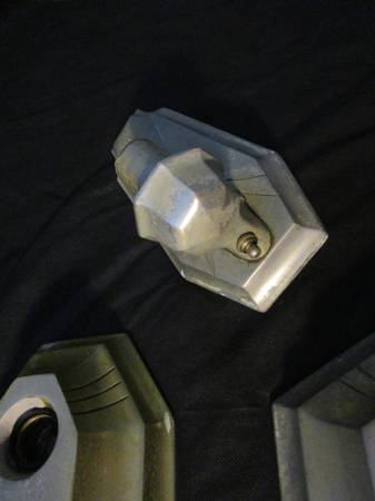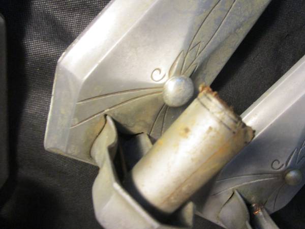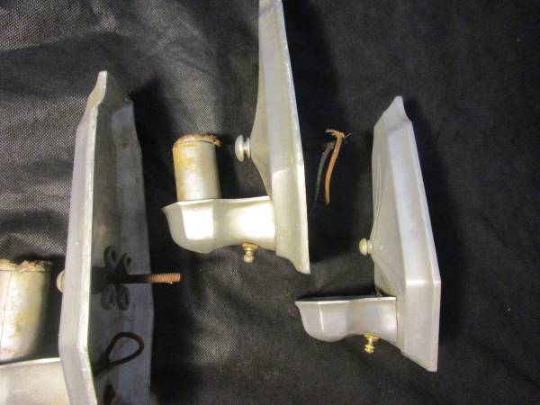 HAREWARE: They are all made of aluminum and have zero issues with being complete, solid and in great condition. The have some remaining overpaint marks and it appears that they had a clear coat on them way back.... most of paint and clear coat are now pretty much gone. A good clean and buff and these will look great again!