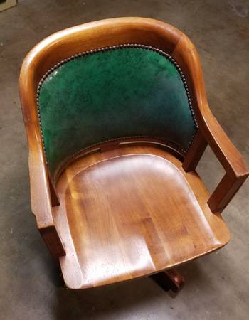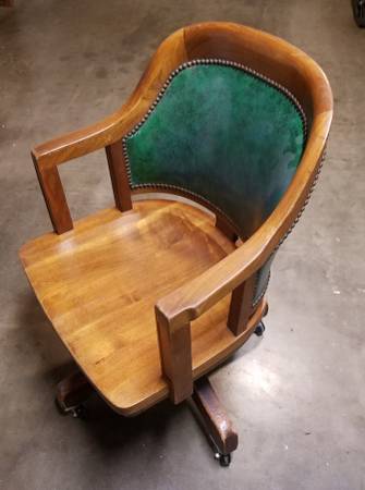 1920's Solid Walnut Swivel, Tilt and Rolling Banker's Office Chair. New wheels. Serious inquiries only please.