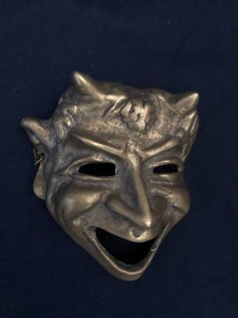 This is an amazing vintage Bronze metal devil demon tragedy mask made in Greece. This item is in good condition This is the full size version and not the 4" ceramic or resin ones. This mask is heavy...