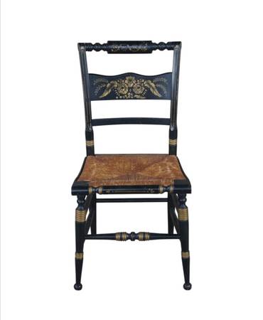 L. Hitchcock Signed Vintage Dining Chair With Gold Floral Stenciling Ebony Black in excellent condition as can be seen in attached photos.