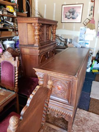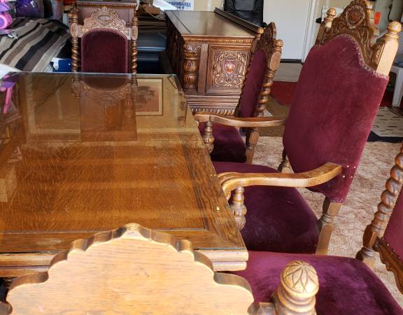 I have a matching hutch, sideboard and table with 8 chairs priced for quick sale. Will sell separately or as a set for $1000/obo. All pieces are in good condition. Table includes glass cover....